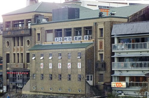 昨日は 年金者組合新春観劇会で 前進座初春特別公演を観てきました 会場の先斗町歌舞練場を 鴨川を挟んで対岸から撮影 正面入口側 中に入るとこちら側が舞台になっていました 鴨川を背にして 舞台を見ることになります 15時の開場を待っていると 舞妓さん…